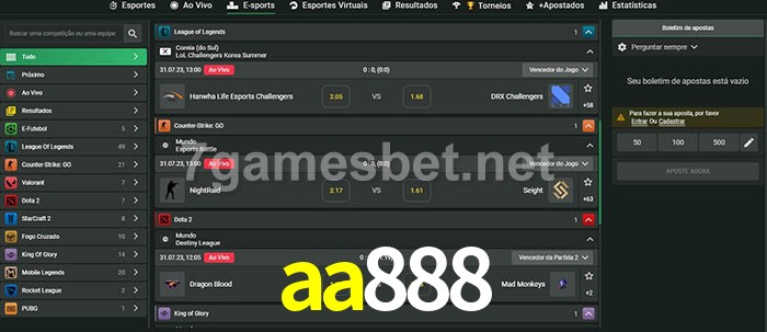 O aa888 oferece uma grande seleção de opções de apostas em e-sports com probabilidades competitivas